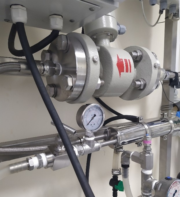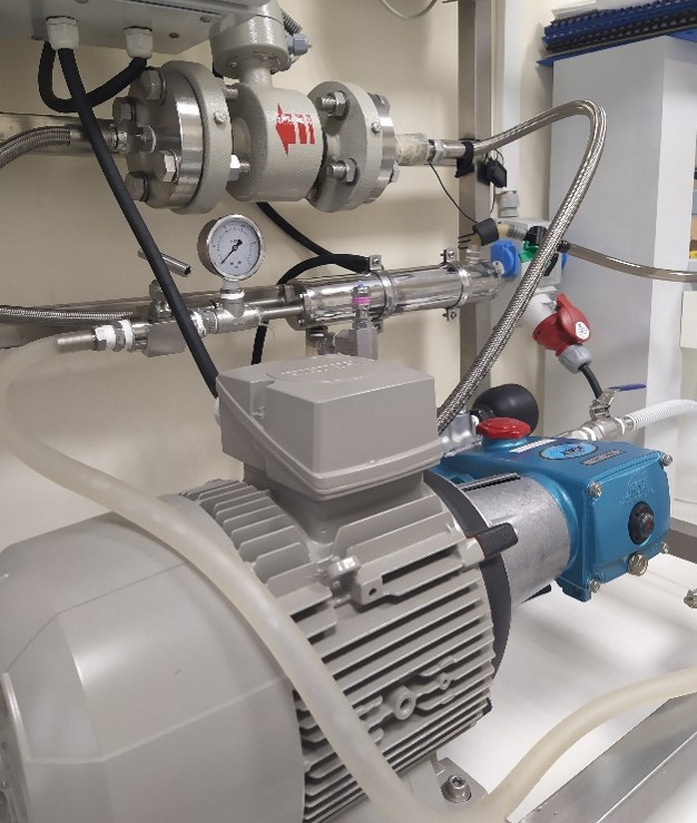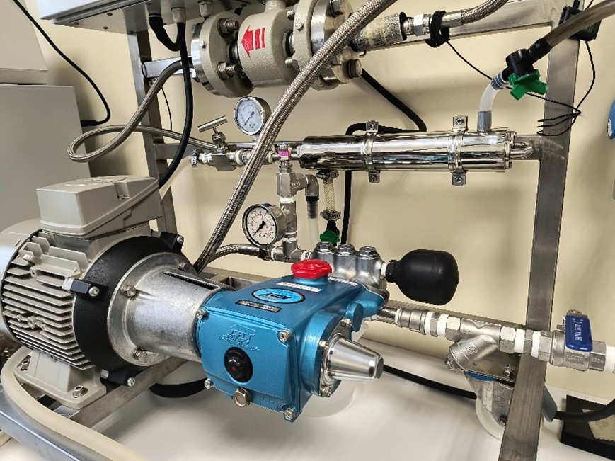 układ filtracyjny RO20NS.1 wyposażony w moduł membranowy Micro 240 PCI Membranes (UK, PCI Mebranes) z możliwością stosowania różnego rodzaju membran tubularnych. Parametry pracy układu pozwalają na prowadzenie analiz/badań w skali półtechnicznej, z szerokim zakresem parametrów wyjściowych, tj. ciśnienie: 1 ÷ 40 barów, pH: 1,5 ÷ 12, przepływ: 1 ÷ 20 dm3/min